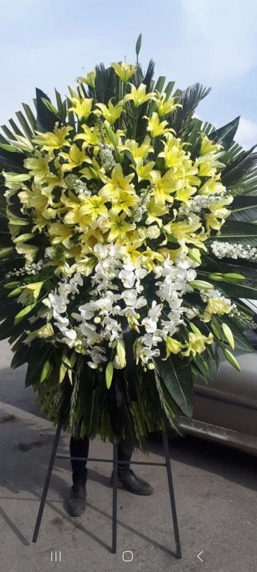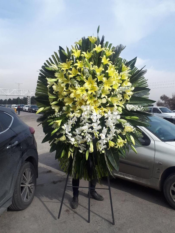 این تاج گل یه کار خاص و شیک و تنها از گلهای لیلیوم و ارکیده گل آرایی شده.